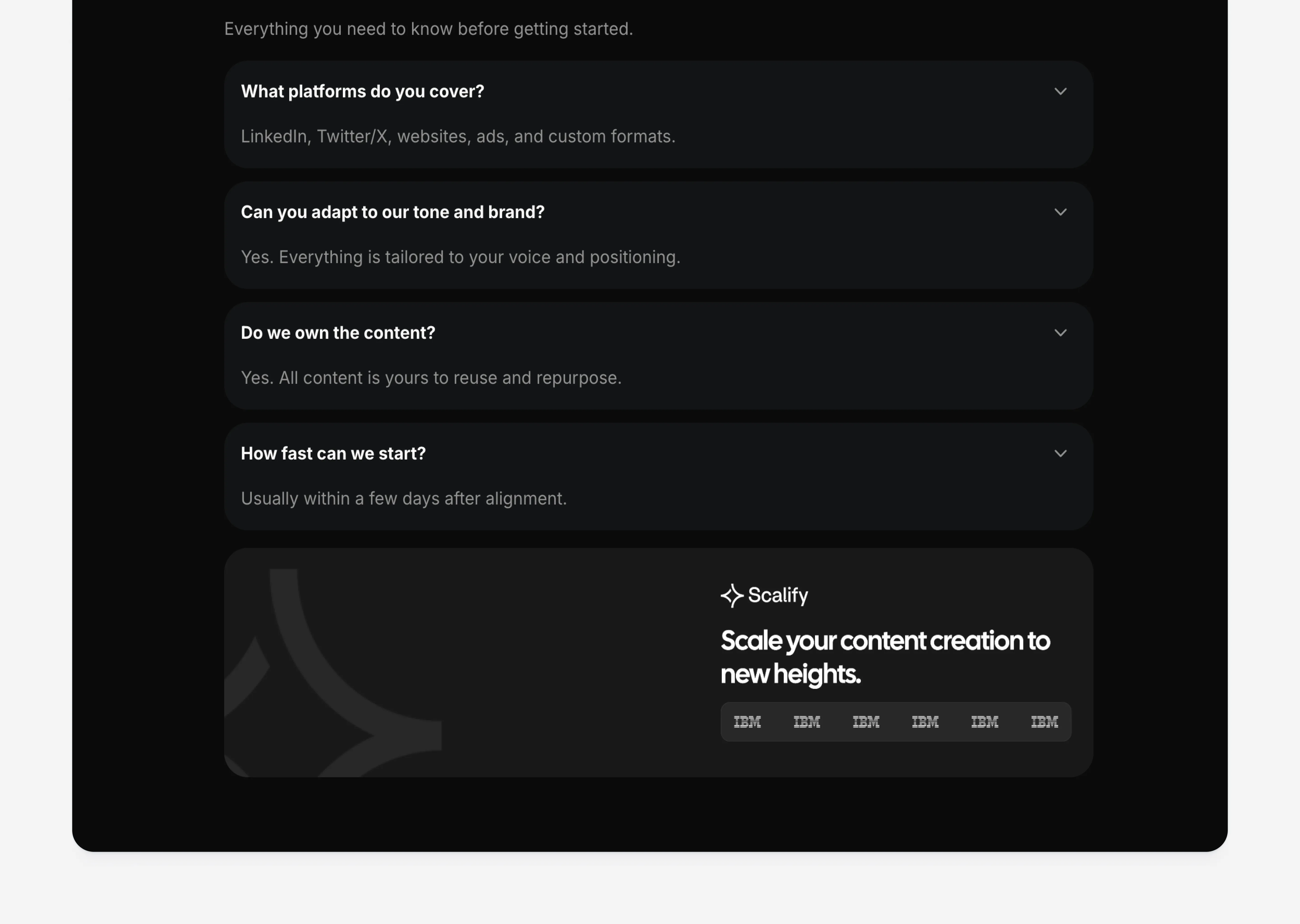 Ideal for content retainers, social media, video, or copywriting services.